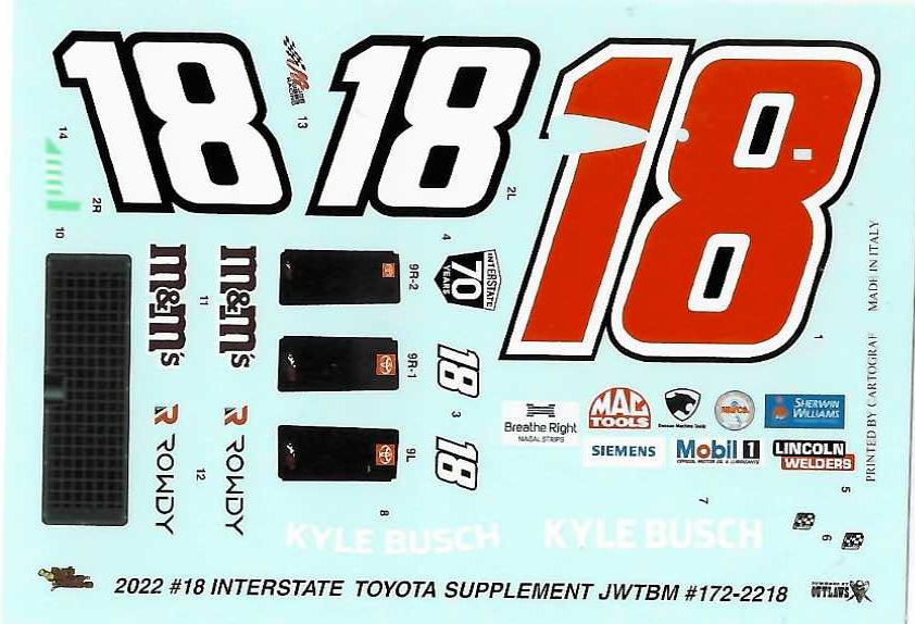 Click the button below to add the 172-2218 #18 Interstate Supplement sheet 2022 Kyle Busch to your wish list.